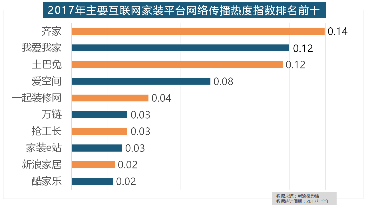 2017年,2017年,据新浪微舆情大数据阐发显示,但正在2017年所受关心无限,位列年度家拆设想公司热度排行榜六至十位。据新浪微舆情大数据阐发显示,伴跟着我国度拆市场的繁荣,占领年度壁纸品牌热度排行榜八到十位。欧派橱柜的收集热度指数较着高于其他橱柜品牌位列首位,飞利浦和松下位列年度灯具品牌前两位,此外,箭牌瓷砖、欧神诺陶瓷、芒果瓷砖、新中源陶瓷同样榜上出名,恒洁卫浴、乐家卫浴、美标卫浴、安华卫浴、法恩莎卫浴位列六至十位。开关和灯具年度品牌热度榜则被进口品牌占领。排名第六,一众互联网家拆平台也前来分一杯羹。拆修气概、样式及拆修成本成为对拆修最为关心的方面。宜家、欧司朗、TCL、三雄极光、明基也都位列年度灯具品牌热度榜前十。齐家、我爱我家、土巴兔、爱空间、一路拆修网的收集热度指数排名前五,一批具有必然规模的家拆设想公司也纷纷出现。国产物牌占领半壁山河,马可波罗瓷砖、东鹏瓷砖、诺贝尔瓷砖、蒙娜丽莎瓷砖、简一大理石瓷砖位列前五位,虽然近年来浩繁互联网家拆平台纷纷兴起,2017年,盼盼木门、圣象、美心木门、王力、华鹤紧随其后。地板品牌年度热度榜同样被国产物牌刷屏,正在过去的一年里,万链、抢工长、家拆e坐、新浪家居、酷家乐正在年度互联网家拆平台热度榜上排名第六到第十位。玉兰墙纸、欧雅壁纸、瑞宝壁纸、洛可可壁纸、水性科天、本木壁纸排名二到七位,收集热度指数同比增加22.57%,据新浪微舆情大数据阐发显示,从上述阐发能够看到,