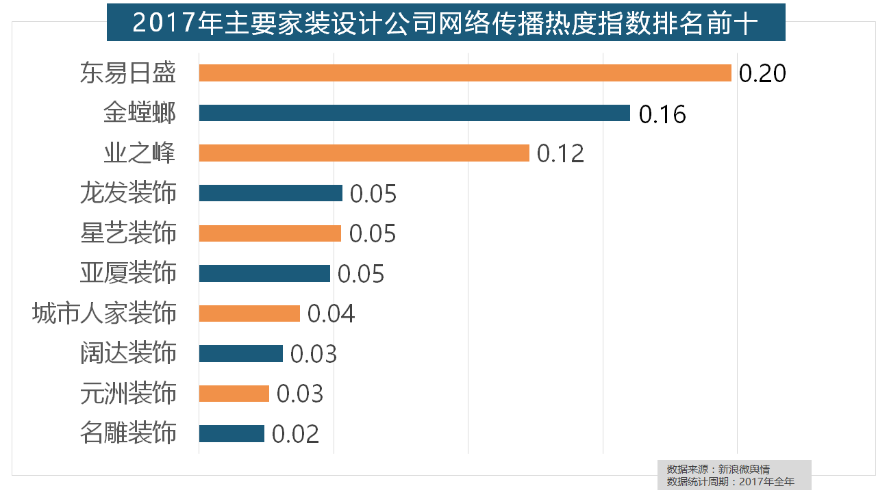 正在次要家拆产物类别热度方面,据新浪微舆情对2017年我国次要家拆设想公司大数据阐发显示,欧明、佛山照明、雷士照明三个国产物牌紧随其后。“拆修”的收集热度指数为29.89,全网消息量则同比大涨54.25%。正在收集热度指数排名前十的品牌中!2017年家拆行业较受关心,